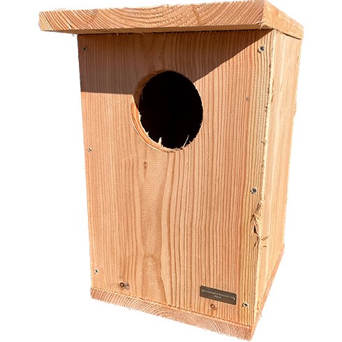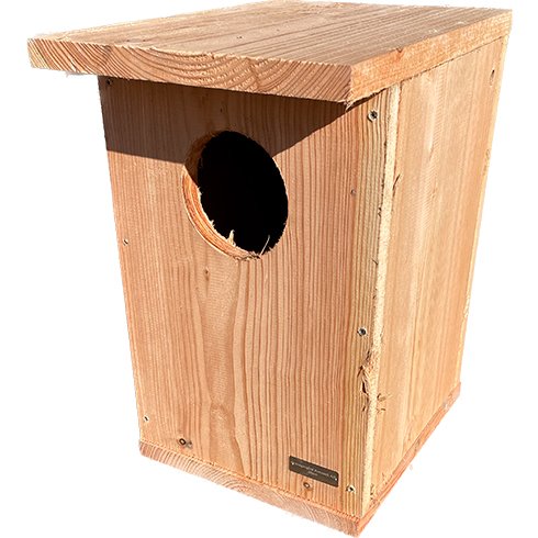Denne uglekasse er håndlavet og måler 49,5 cm i højden, 30 cm i bredden og 35 cm i dybden. Den er den perfekte størrelse til at give uglerne masser af plads til at yngle og føde deres unger. Det runde hul i kassen måler ca. Ø11,5 cm.